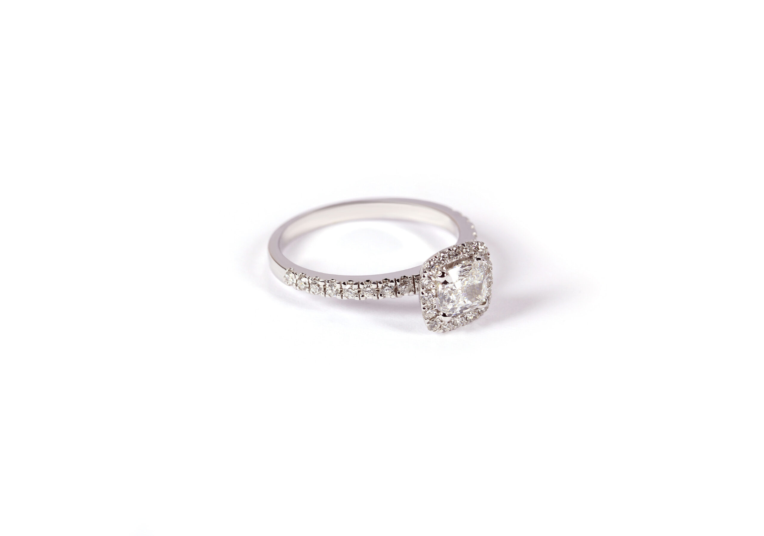 Der Ring „Cushion“ aus 18kt Gold und natürlichen Diamanten fasziniert mit einem schönen Mittelstein umgeben von kleinen Brillanten und macht ihn zu einem tollen Schmuckstück für dich.